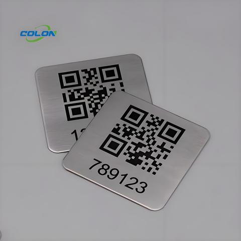 Étiquettes de code-barres Qr en métal gravées au laser Étiquettes d'actifs autocollantes en aluminium anodisé Plaques de logo en métal