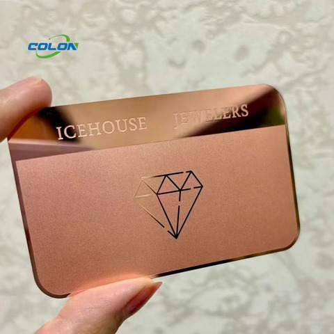 Carte de fidélité VIP personnalisée en métal poli miroir avec gravure laser et sérigraphie