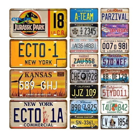 Plaque d'étain en métal vintage USA Art voiture américaine numéro de licence affiche métal étain signe pour Bar Pub décor